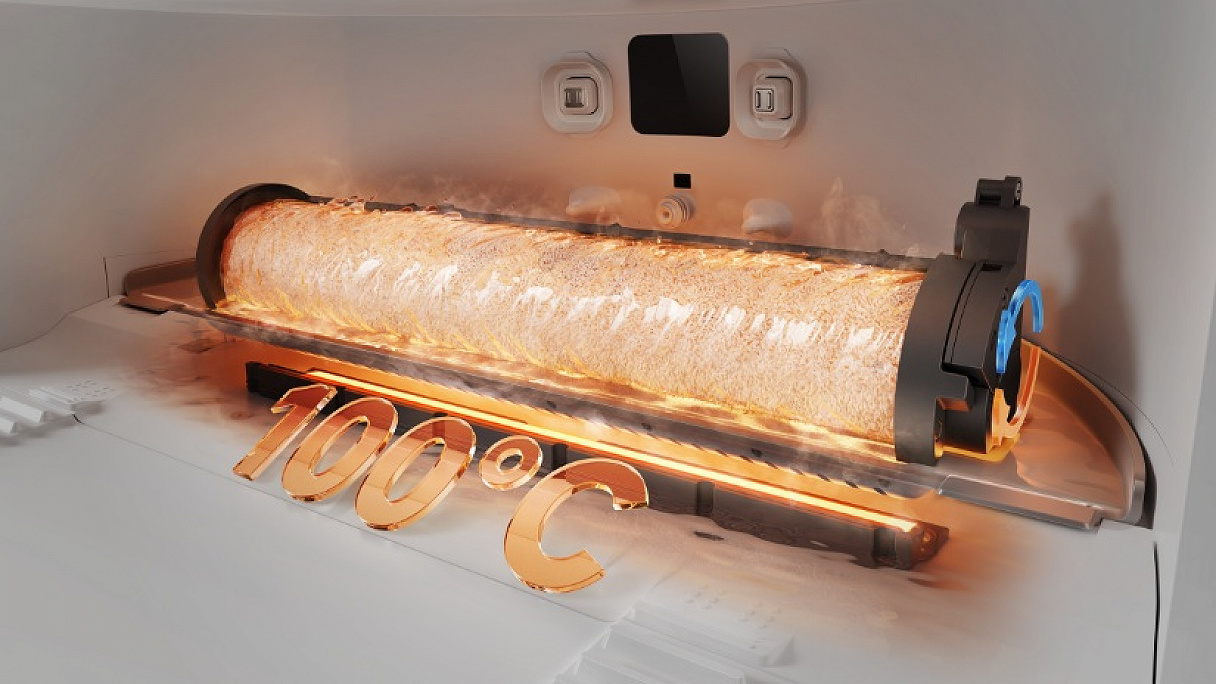 Foto: DreamePo návrate do stanice sám vyčistí mopovací valec horúcou vodou s teplotou až 100 °C a vysuší ho. Odstráni tak všetky nečistoty a nepríjemný zápach. Vy nemusíte pohnúť ani prstom.